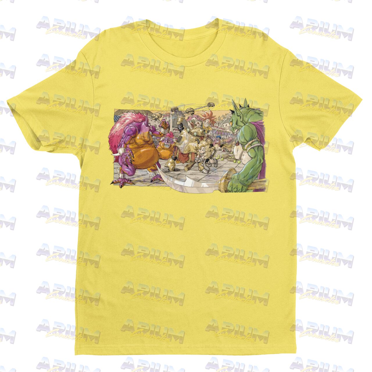 Trouxemos a ação clássica de Chrono Trigger direto para o mundo real. Essa camiseta estampa a batalha intensa contra os Místicos de Medina, com o traço inesquecível do mestre Akira Toriyama.