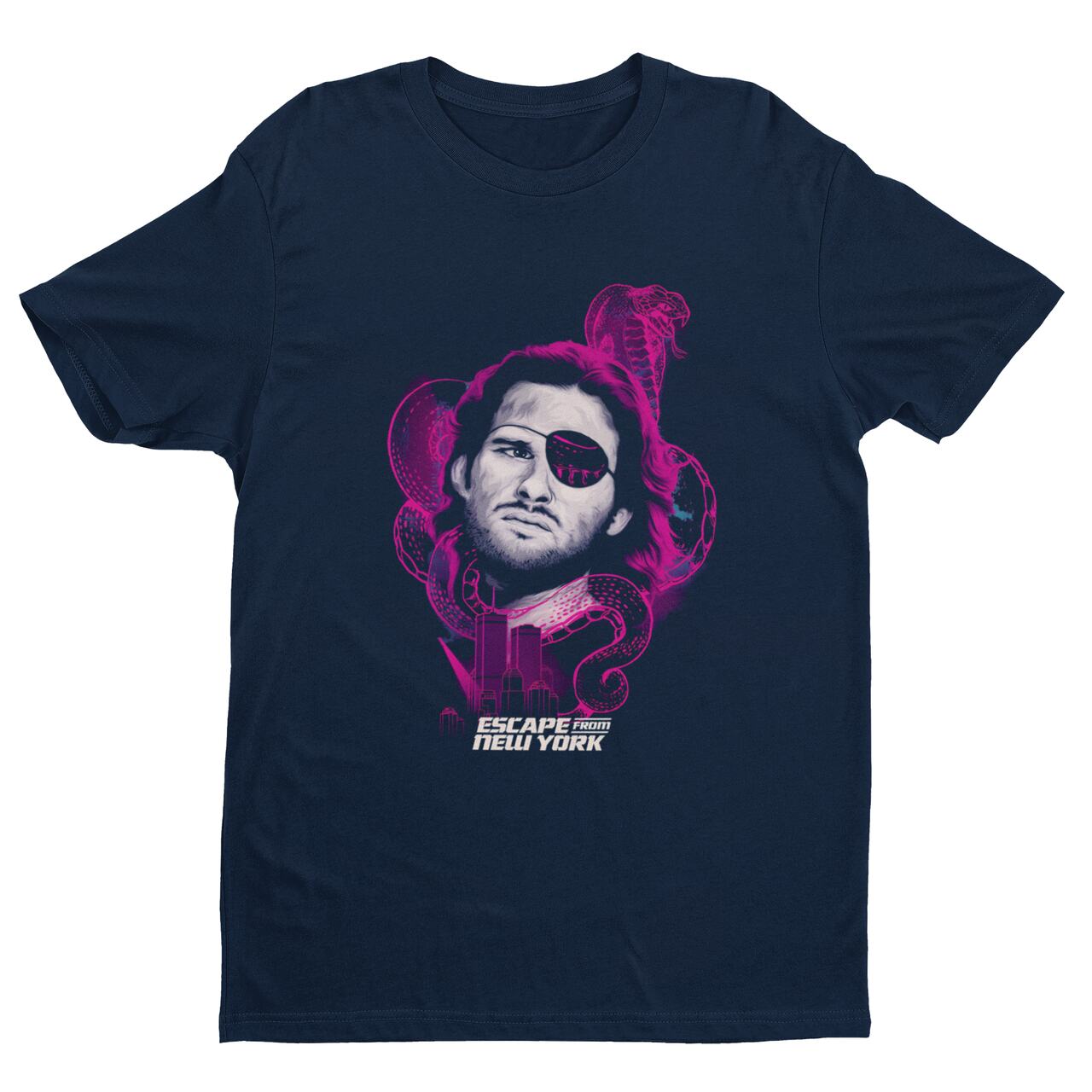 Se você acha que o futuro distópico de 1997 precisava de uma trilha sonora de sintetizadores e luzes de neon, prepare-se para esta releitura espetacular. Esta estampa pega o anti-herói supremo do diretor John Carpenter e o joga direto em uma estética synthwave de explodir a mente.