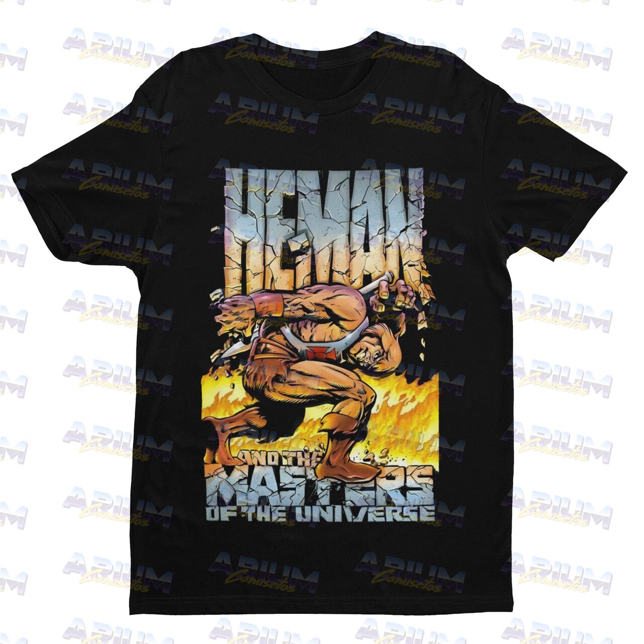 Esta camiseta preta traz uma estampa espetacular e cheia de ação, capturando He-Man em sua forma mais bruta, rompendo uma parede de pedra em meio a chamas. Com um estilo de arte que remete diretamente aos quadrinhos vintage e à era de ouro da animação dos anos 80, esta peça não é apenas roupa; é um portal para as melhores memórias da sua infância.