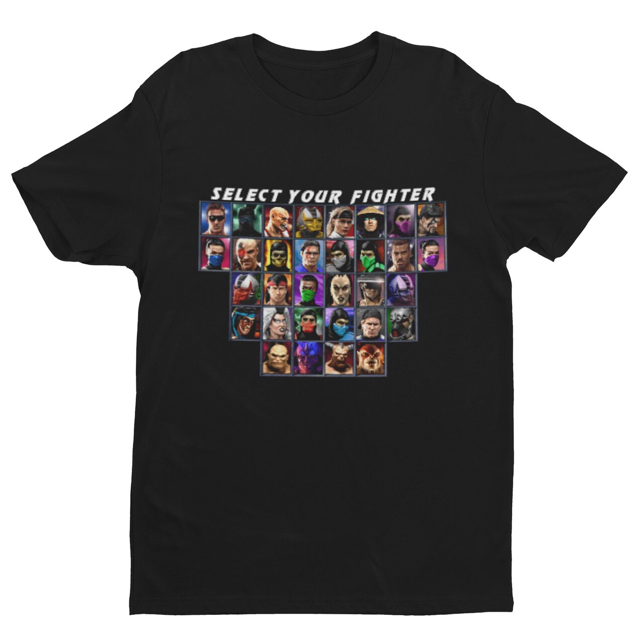 O design exibe a lendária tela de seleção que definiu a era 32-bits (PlayStation/Saturn/N64). Diferente da versão anterior, aqui o elenco está completo: Johnny Cage e Raiden retornam triunfantes, e na base da pirâmide invertida, os titãs que antes eram intocáveis — Goro, Kintaro, Motaro e Shao Kahn — finalmente estão sob seu controle.