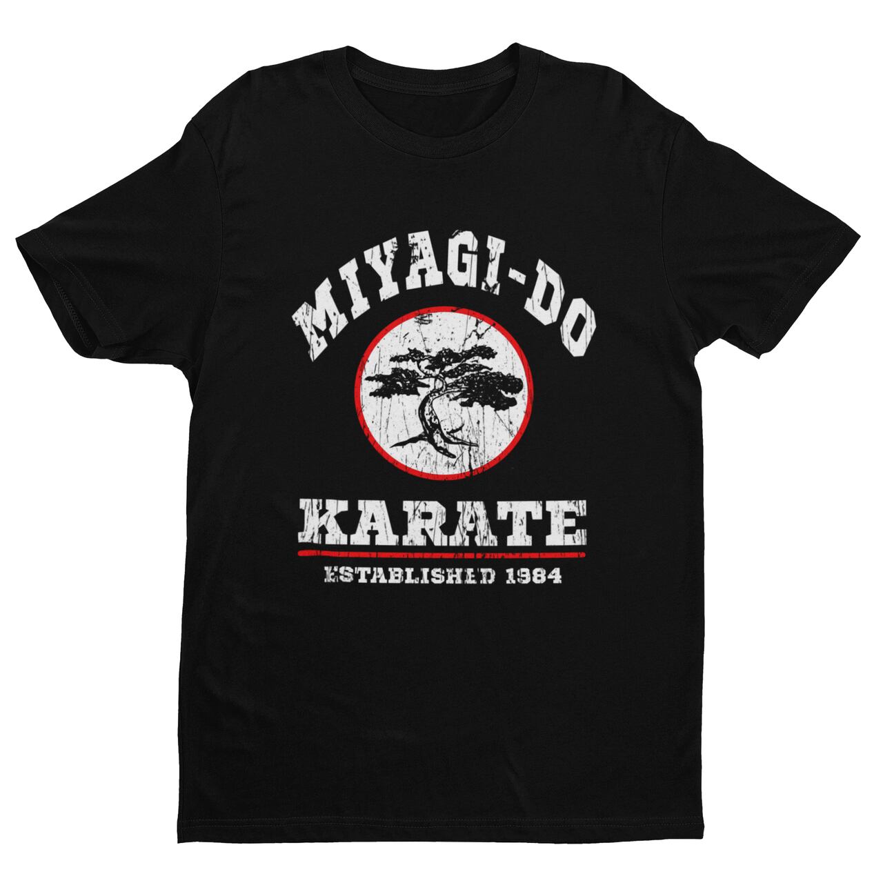 O design ostenta o lendário emblema do Miyagi-Do Karate, destacando o icônico bonsai negro centralizado em um círculo vermelho — o símbolo universal de raízes fortes e crescimento contínuo. A tipografia robusta e o acabamento propositalmente desgastado (distressed) dão à peça um visual autêntico e nostálgico, como se fosse uma camiseta que sobreviveu a intensos treinamentos desde o ano de fundação gravado na base: o histórico ano de 1984.